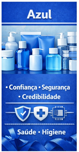 O azul está associado à confiabilidade, tranquilidade e estabilidade. Por isso, é amplamente utilizado em rótulos de produtos que precisam transmitir segurança, como itens de higiene pessoal, cosméticos, farmacêuticos e tecnologia.