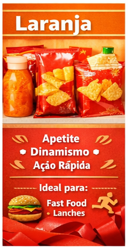 Além disso, estimula o apetite e contribui para decisões rápidas de compra, sendo um recurso eficiente para produtos de alto giro.