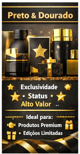 A combinação de preto e dourado comunica exclusividade, elegância e alto valor agregado. É amplamente utilizada em embalagens premium, edições especiais e produtos de alta gama.